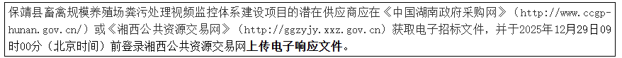 有意参加投标者,于2025年12月17日08 时00 分至2025年12月23日17 时00 分(北京时间)),在《中国湖南政府采购网》(http://www.ccgp-hunan.gov.cn/)或者《湘西公共资源交易网》(http://ggzyjy.xxz.gov.cn) 获取电子招标文件。