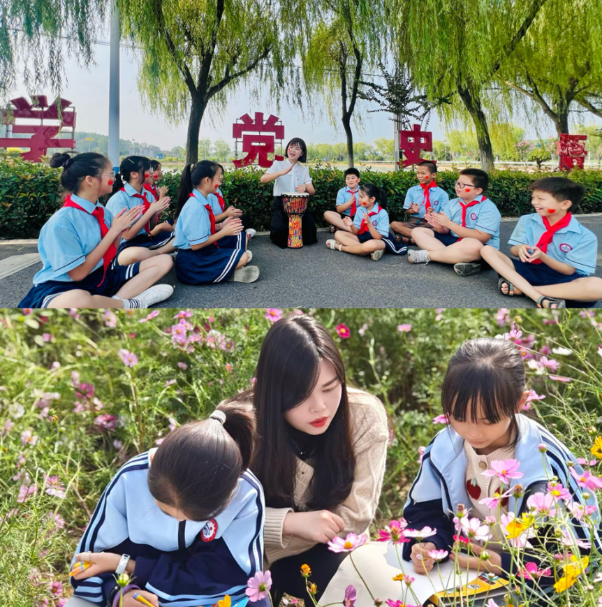 语文课在油菜花田中吟诵诗词,感受自然与文学的交响;美术课用泥土和植物作画,激发对乡村之美的创造;道德与法治课在参与农事劳动中体会“粒粒皆辛苦”的内涵,培养勤俭奋斗的品质。学校将党的二十大精神、社会主义核心价值观的知识,融入家乡绿水青山的变迁、农业科技的进步、乡亲们笑脸背后的幸福故事中娓娓道来。这种“内”“外”融合的课堂,让学生们脚沾泥土,耳濡目染,在实践中深刻领悟思政教育的真谛。