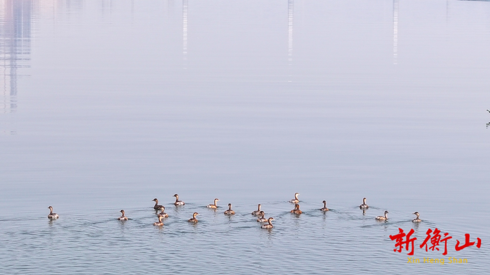 湖南日报·新湖南客户端12月22日讯(通讯员 李圣景 廖晶 文雅婷)冬日的湘江衡山段,江面烟波浩渺,一群小䴙䴘结伴游弋于此,“打卡”衡山渡,为清冷的冬日江景增添了灵动生机。