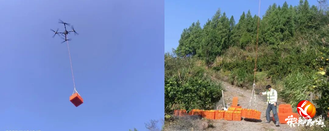 冬日,一架工业级无人机从花垣县花垣镇窝勺社区起飞,精准地将柑橘吊运至山下的货车。
