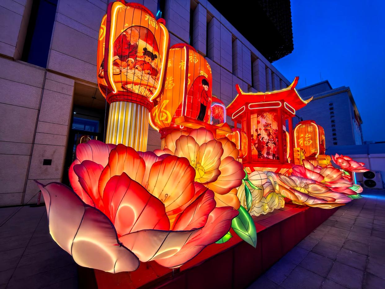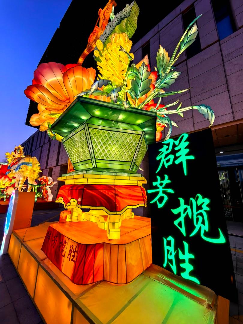 “群芳揽胜”彩灯。北京日报客户端记者 安旭东在中国工艺美术馆·中国非物质文化遗产馆,收藏着有名的翡翠“四大国宝”。而此次展出的“群芳揽胜”彩灯,就取材于馆藏国宝翡翠花篮《群芳揽胜》。这组彩灯以金属丝构骨、绸缎塑形,精妙呈现牡丹、菊花等百花竞艳的繁茂盛景。它还巧妙融入精巧机械传动装置,花瓣开合舒卷,光华流转,灵动鲜活。