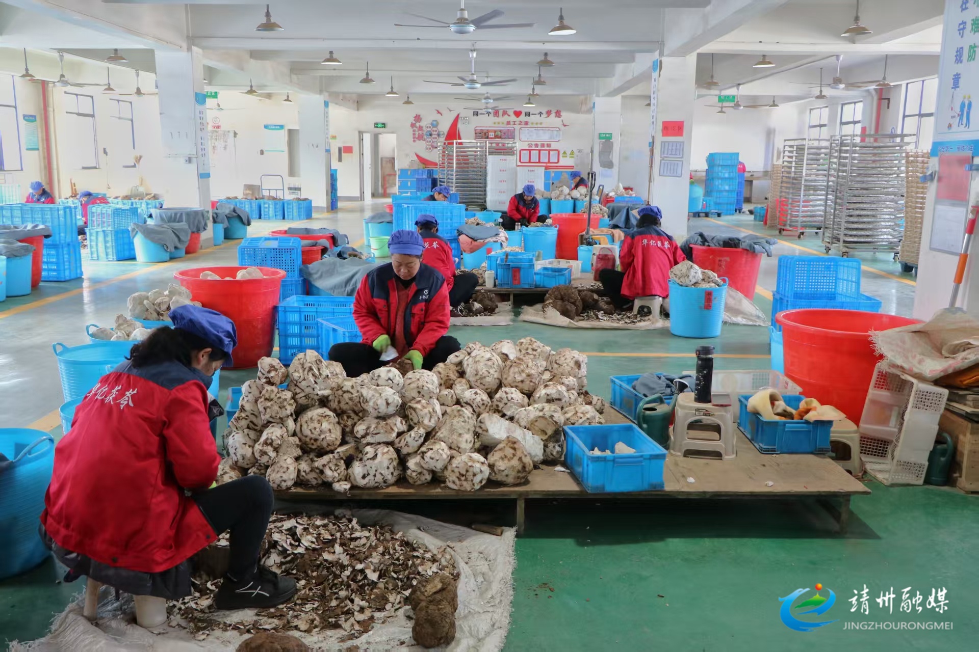 在位于茯苓科技产业园的靖州华亿茯苓科技有限公司车间内,工人们正有序开展茯苓削皮、加工、烘干、包装等工序。作为茯苓全产业链现代化龙头企业,该公司拥有近2万平方米的加工厂房,配置冷藏、无硫烘烤、色选等全套加工设备。