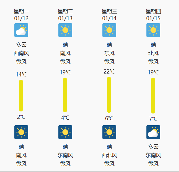 11日08时~12日08时:晴天间多云,北风2级,2~16℃。