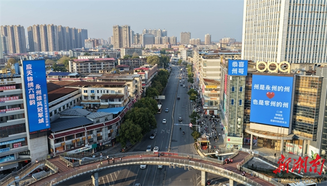 The photo shows congratulation messages from netizens in Jiangsu Province are showcased on the advertising boards and outdoor electronic screens in Yongzhou City. In recent days, the advertising boards and outdoor electronic screens across Yongzhou downtown areas have been filled with messages of congratulations from cities across Jiangsu Province, such as Nanjing, Suzhou, Taizhou, and Nantong, to celebrate the Yongzhou Football Team's victory in the 2025 Hunan Football League (HFL). This initiative has drawn widespread attention and praise online. (Photo/Guo Liliang, Hunan Daily)