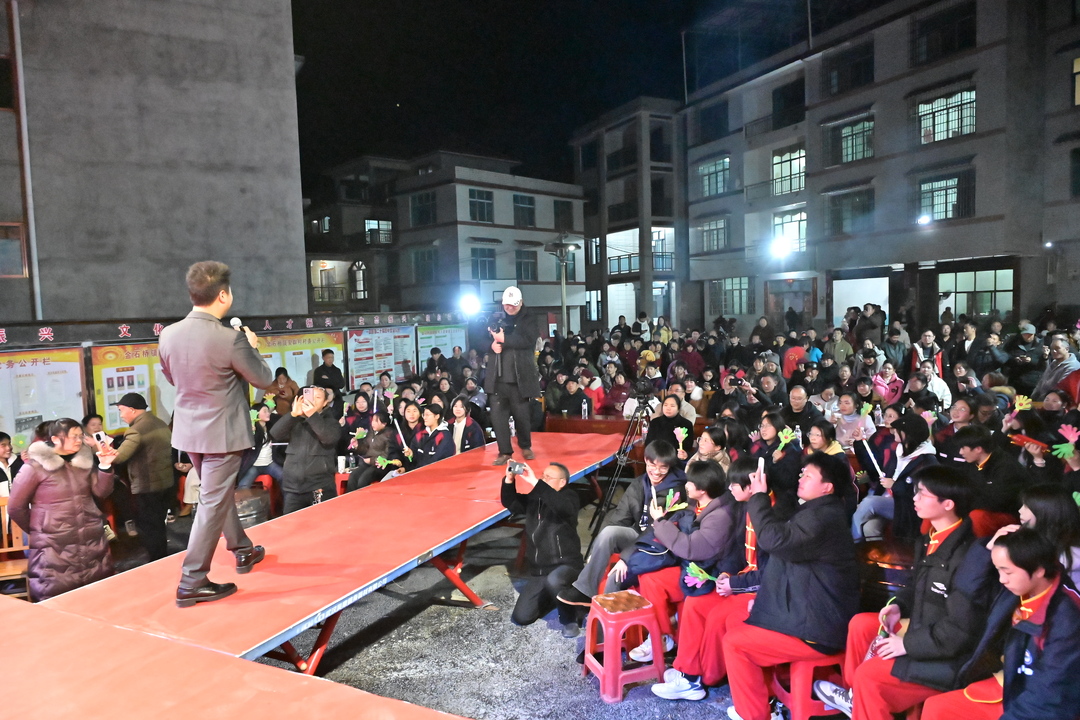 湖南日报·新湖南客户端1月9日讯(通讯员 贺上升 记者 郑丹枚)“我活到这么大岁数了,第一次在家门口看‘明星’和当地演员一起热闹演出,真是过瘾。”1月8日晚,隆回县金石桥镇聚群村“村晚”现场,一位70多岁的村民发自肺腑高兴地说。