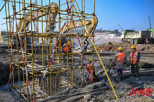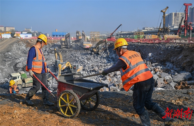 The photo shows construction workers carrying out subgrade construction at the construction site of the Yongzhou Station renovation project for the Shaoyang-Yongzhou Railway. Undertaken by the China Railway Construction Group Co., Ltd., the renovation of Yongzhou Station is a key control project along the Shaoyang-Yongzhou High-Speed Railway. The station capacity will be expanded from 3 platforms with 13 tracks to 6 platforms with 18 tracks. Upon completion, Yongzhou Station will become an integrated transportation hub that integrates the Shaoyang-Yongzhou High-Speed Railway, Hengyang-Liuzhou High-speed Railway, and the planned Guangzhou-Qingyuan-Yongzhou High-Speed Railway, eliminating the high-speed rail bottleneck between southern Hunan and the Guangdong-Hong Kong-Macao Greater Bay Area. (Photo/Guo Liliang, Hunan Daily)