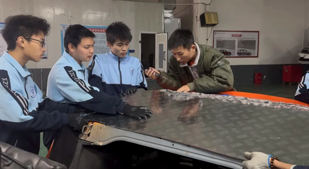 造车过程中,师生团队攻克了多项技术难关。在核心部件安装阶段,方向盘与悬挂系统经过3次角度调试,转向杆松紧度反复测试10遍,只为还原专业驾驶手感。车身外壳选用花纹铝板,采用“冷作钣金”工艺手工敲打塑形,边角处打磨5遍以上,每一道划痕都用砂纸精细抛光。为彰显学校特色,师生们还在车头加装了牛角标识,使其成为独一无二的“融城医科限定款”。由于没有现成教材,老师带领学生查阅行业手册、绘制1:1设计图,在破解实际难题中深化专业理解。