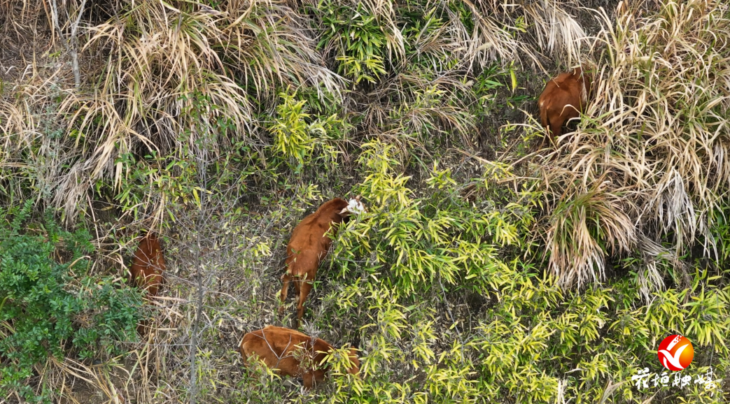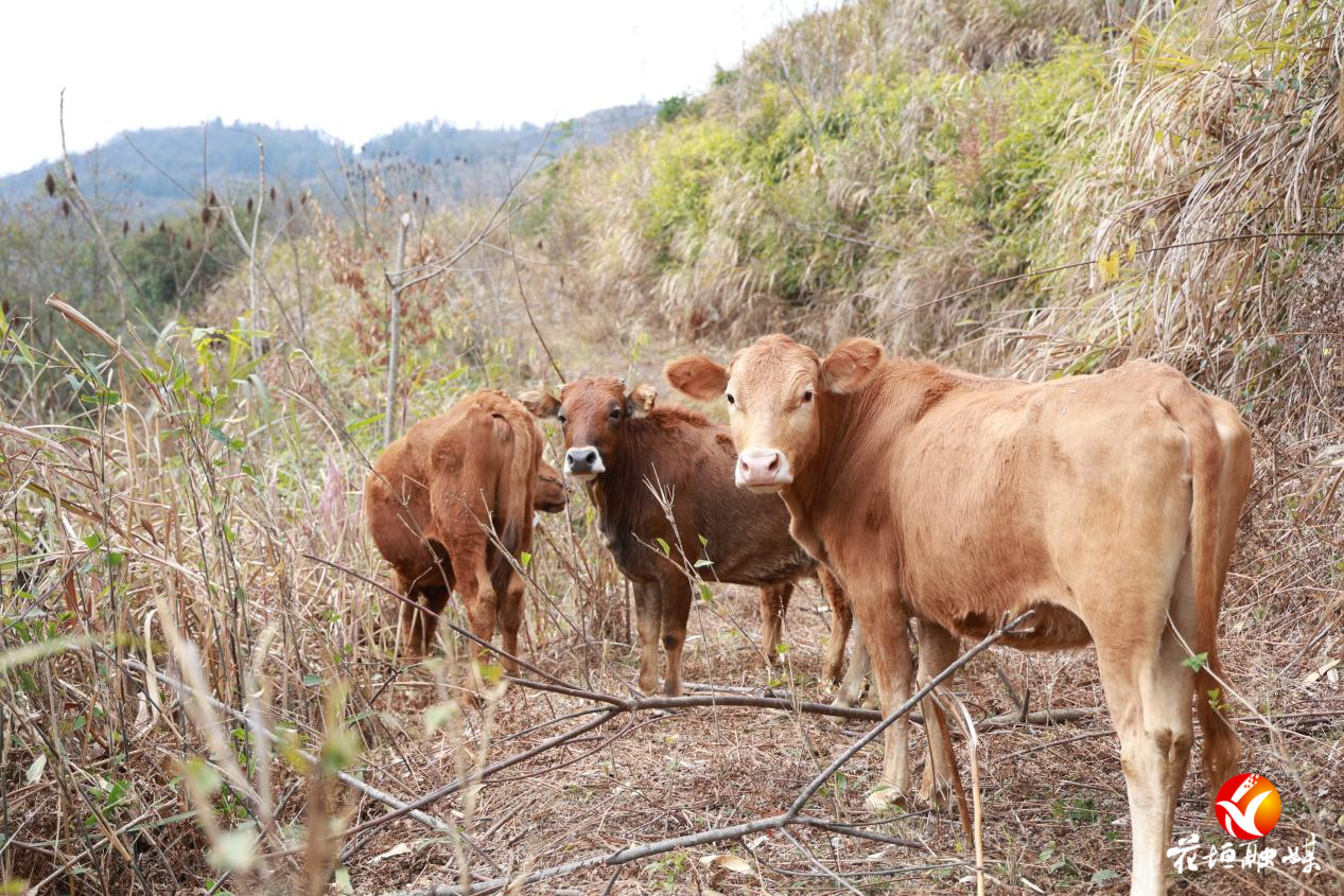 冬日的暖阳穿透薄雾,洒在花垣县花垣镇边城新社区略坝片区海拔700多米的连绵山峦上。几处山坡上,110头黄牛三五成群,正悠闲地啃食带着露珠的野草,构成一幅生机盎然的生态养殖画卷。