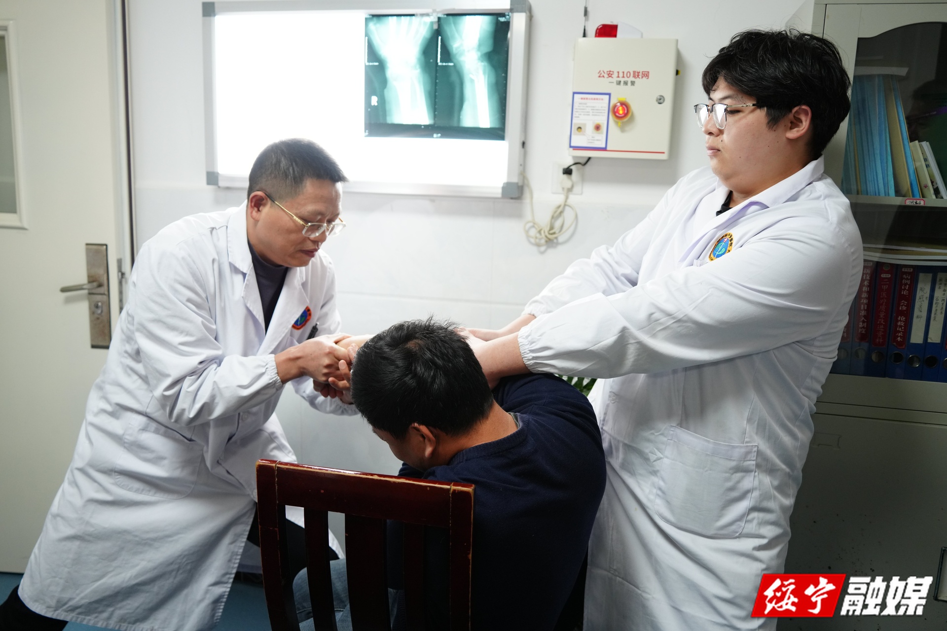 ▲绥宁县中医院医师正在为患者进行正骨疗法