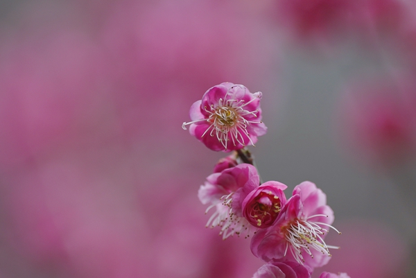 抬眼望去,密密匝匝的花蕾缀满枝头,有的已然舒展花瓣,露出粉嫩的花蕊,有的含苞待放,透着几分娇俏,微风拂过,淡淡的幽香沁人心脾。游客们或漫游步道,在梅枝下驻足拍照;或乘坐观光电车,穿梭于峰林花海间,将“红梅映奇峰”的美景尽收眼底。