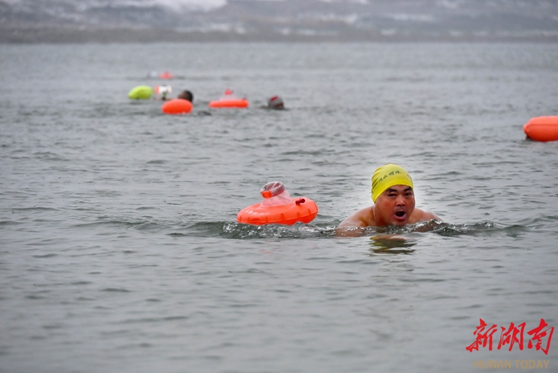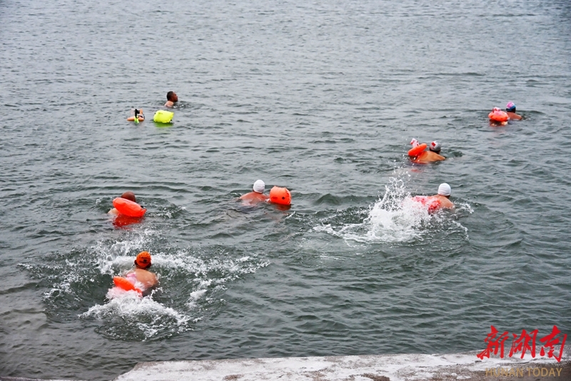 1月20日,澧水澧县段,冬泳爱好者在游泳。 大寒节气,低温抵挡不住冬泳爱好者的热情,他们用行动诠释着对冬泳运动的热爱。柏依朴 摄(湖南图片库)