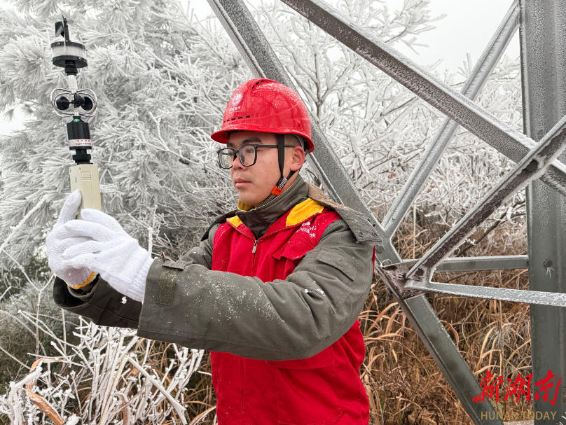 湖南日报·新湖南客户端1月21日讯(通讯员 刘元辉)“覆冰厚度2毫米,风速每秒5米,当前线路运行正常!”1月20日,国网邵阳供电公司输电运检人员赵宣东、黄俊玮在220千伏苗儒线牛排山地段开展特巡工作,重点监测导线覆冰与舞动情况,全面检查杆塔、金具及绝缘子运行状态。日前,我市新一轮雨雪天气带来“速冻式”降温,给电网安全运行带来严峻考验。国网邵阳供电公司全力应对寒潮天气,全力保障电力可靠供应。