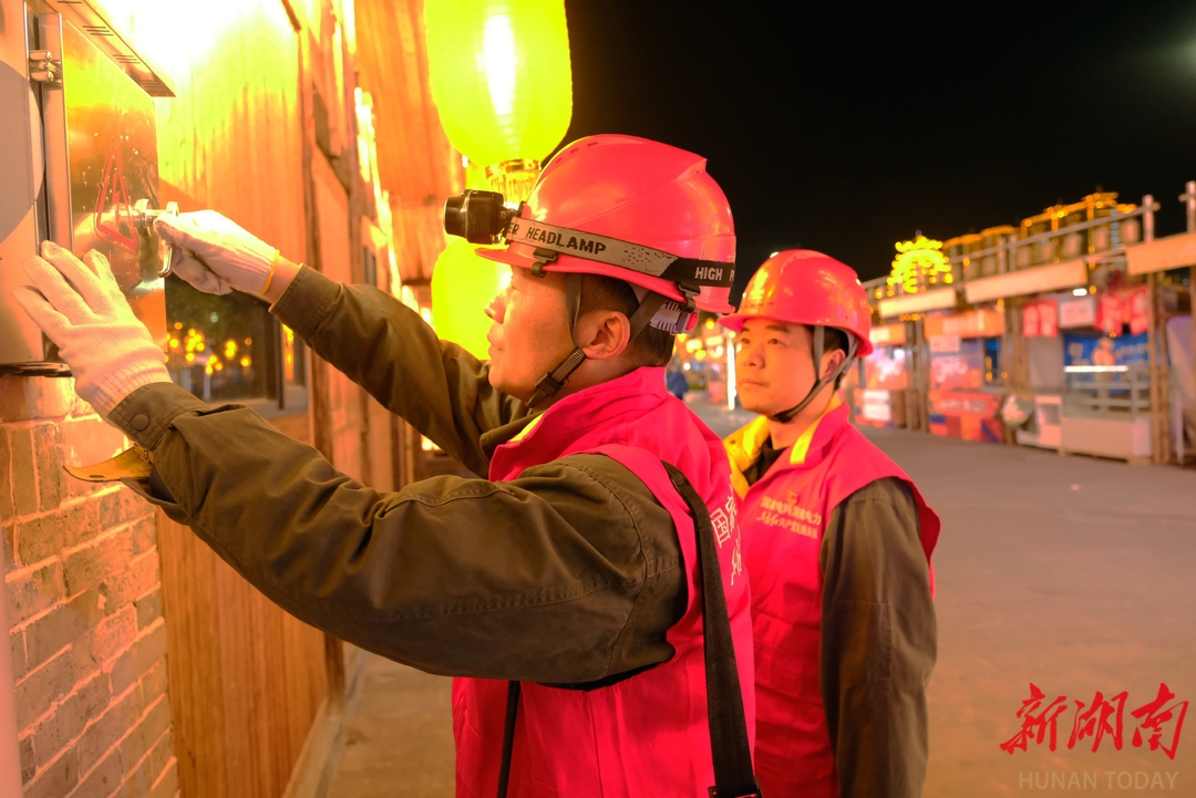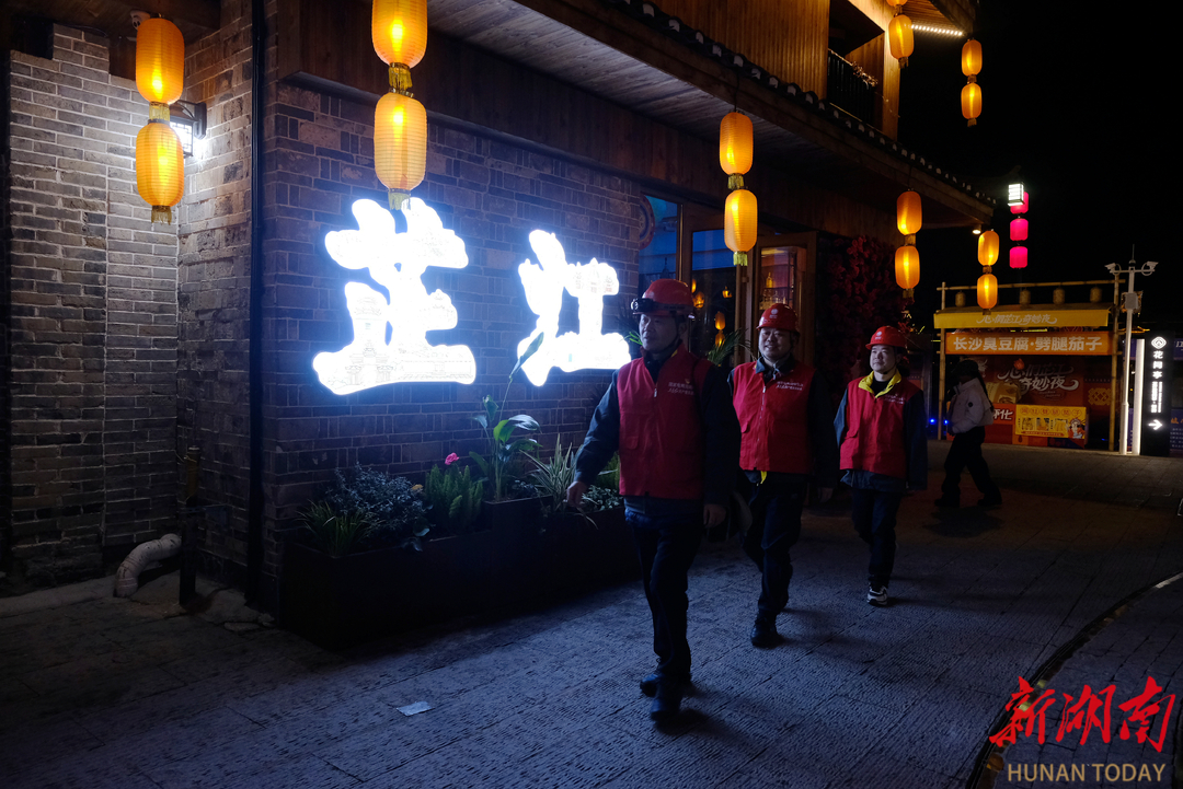 1月19日,国网芷江侗族自治县供电公司积极应对寒潮,组织员工深入飞虎风情街夜市,开展供电线路巡视与开关接线检查,全力保障低温环境下旅游景点夜间供电安全可靠,护航冬日“烟火气”。