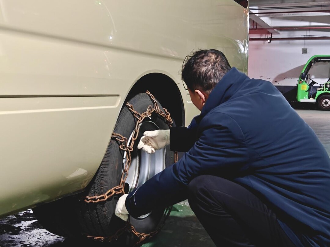 安装防滑链。蒋海霞 王萍 摄