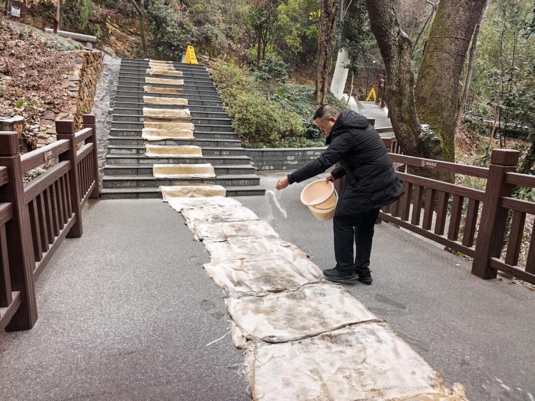 巡逻工作同步开展,麓山景区保卫科及驻景消防队队员每日例行凌晨巡路,在游客进入园区前发现并上报结冰点,安保人员在桥梁坡道旁预置防滑麻袋,在临崖路段增设警示性标志,对古树名木进行保护性加固,对裸露管线进行防护包扎,并逐一落实防寒防冻防滑及用火用电安全措施。同时,橘子洲景区对畏寒苗木进行防冻保护,提前完成观光车全面检修与防滑链配备。