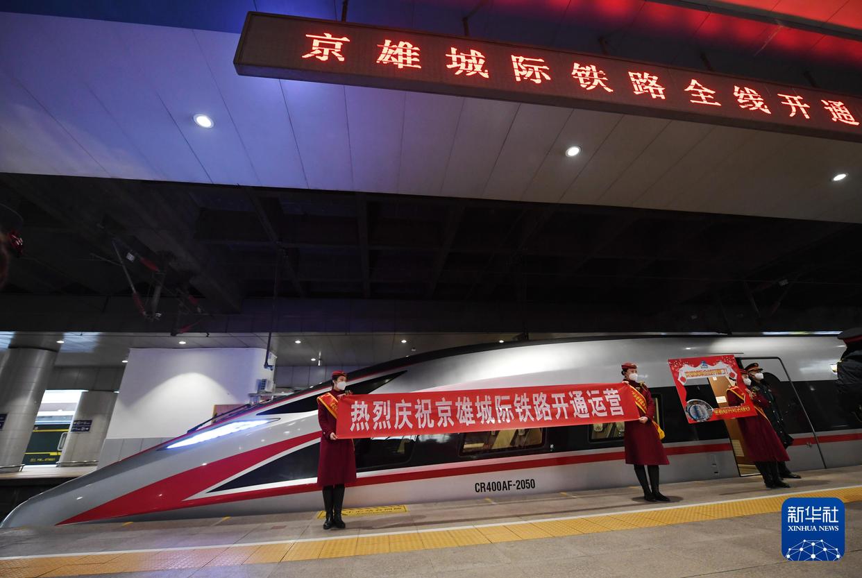 2020年12月27日,京雄城际铁路全线贯通,从北京西开往雄安的首发列车停靠在北京西站站台。新华社记者 张晨霖 摄