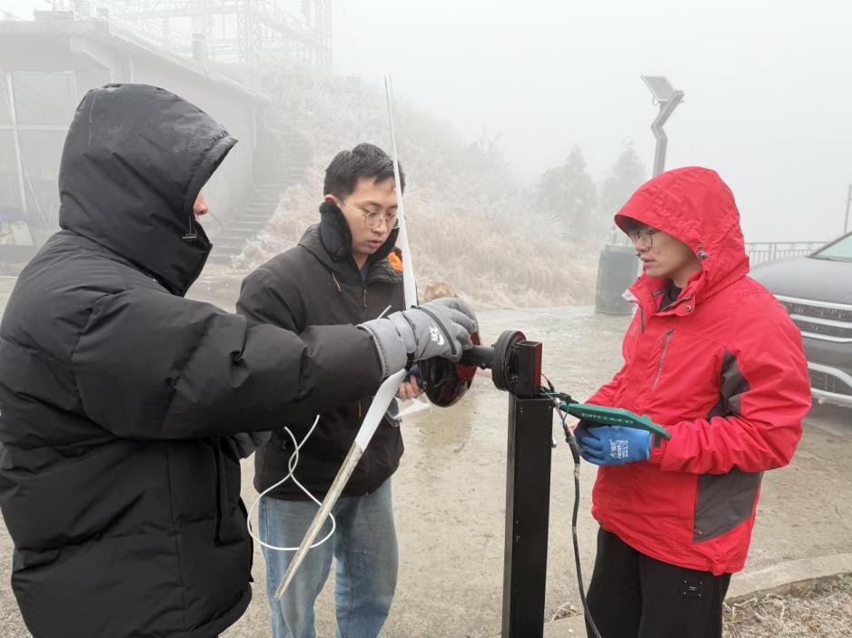在持续一周的观测中,团队利用高精度传感器和高速摄像系统等,对风机叶片、不同型号绝缘子及分裂导线的覆冰全过程进行不间断记录。通过采集不同气象条件下覆冰的厚度、密度、重量及生长速率等关键参数,团队初步构建起我国中南部典型微地形区域的覆冰生长数据库,为风电场、输电线路的防除冰设计提供直接依据。