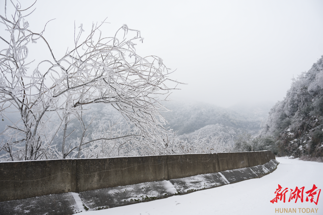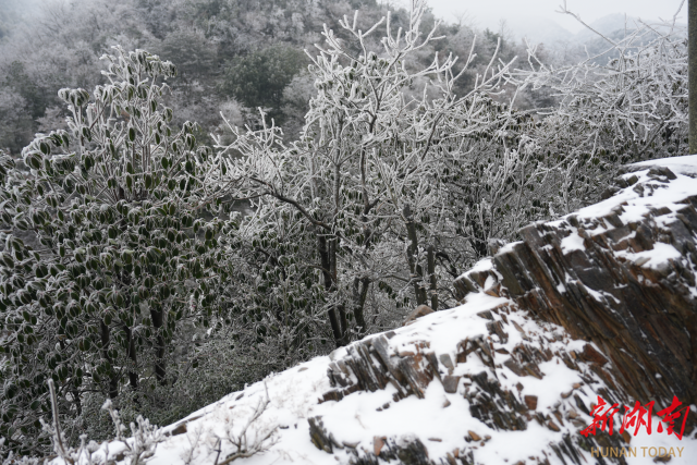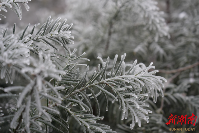 湖南日报·新湖南客户端1月22日讯(通讯员 马婧 杨亚 何佳达)连日的低温雨雪冰冻天气,湘潭县石鼓镇顶峰村出现壮美的雾凇冰挂美景。山间树木一夜“白头”,晶莹剔透的雾凇冰挂在微风中轻轻摇曳,美不胜收,为冬日的山川增添了灵动与诗意。