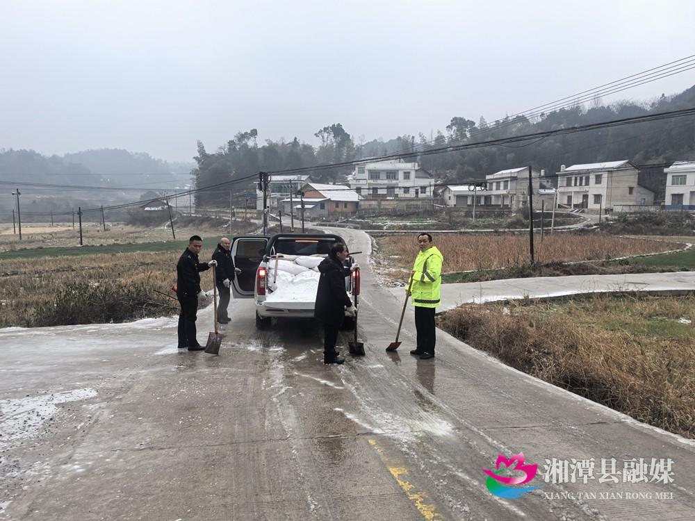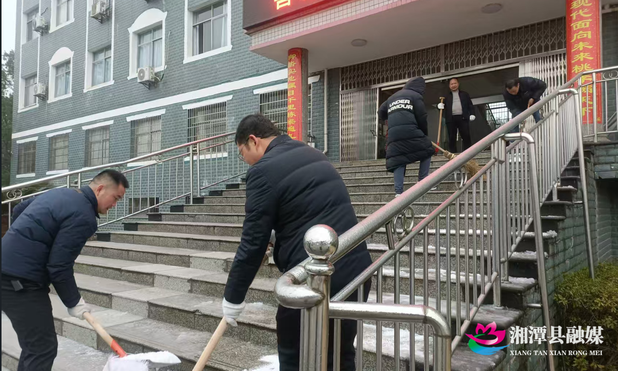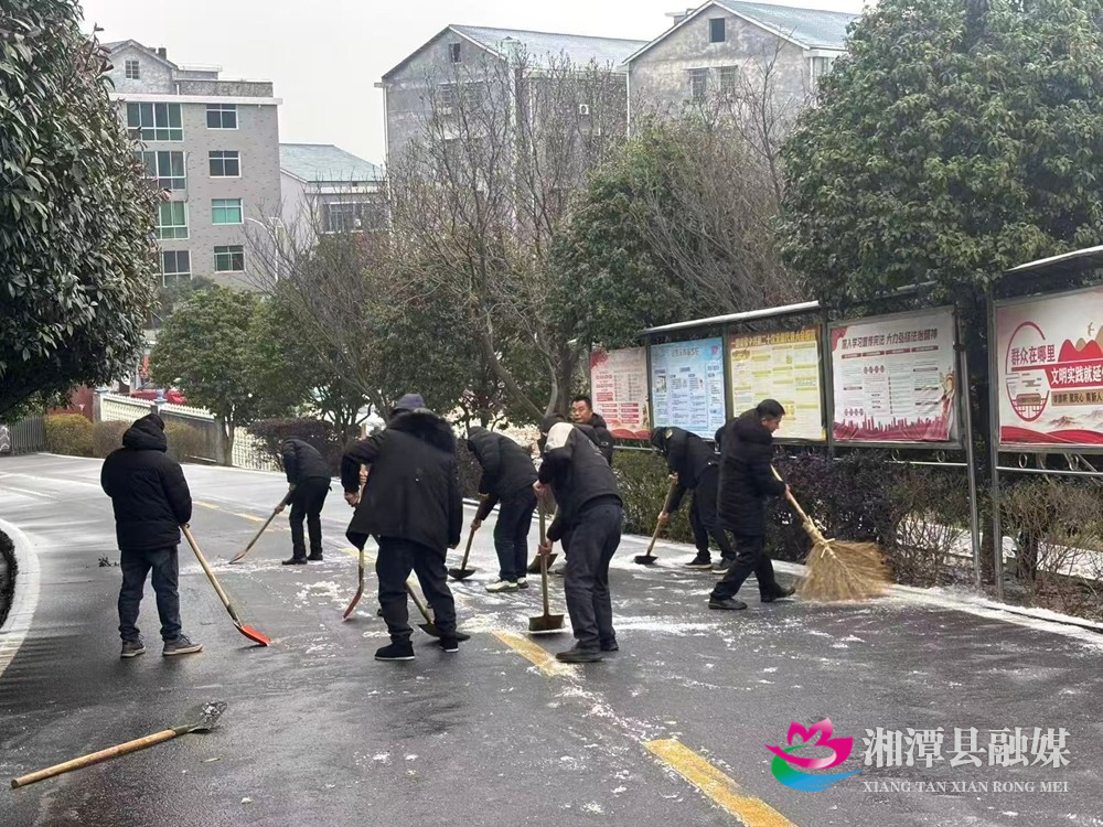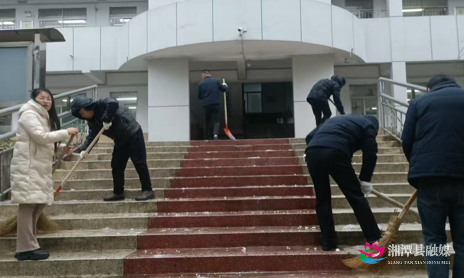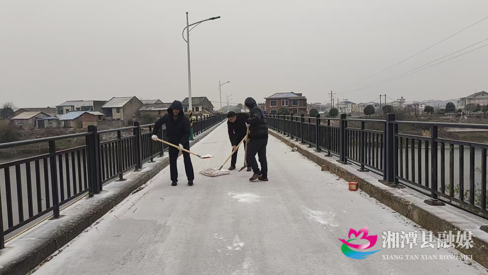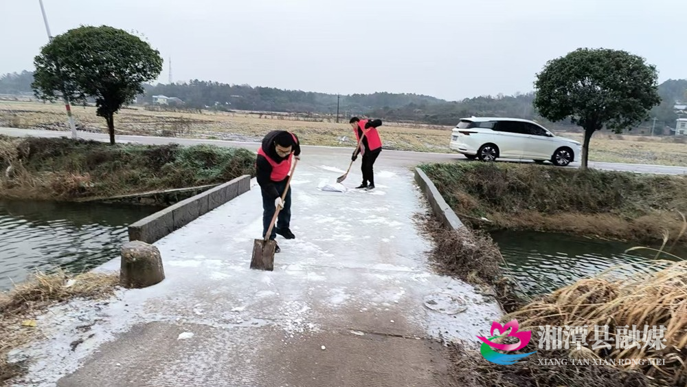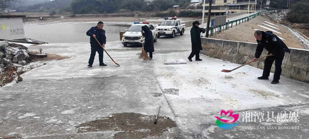 湖南日报·新湖南客户端1月22日讯 (通讯员 傅灵燕 )1月22日,湘潭县低温冰冻天气持续。为方便群众生产生活,消除安全隐患,湘潭县各单位党员干部始终冲锋在前,大力清除主干道、桥梁、坡道等交通节点的冰雪,确保交通畅通和出行安全。
