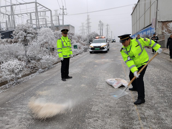 在零下低温的结冰路上,隆回交警用实际行动诠释了“人民公安为人民”的初心使命。