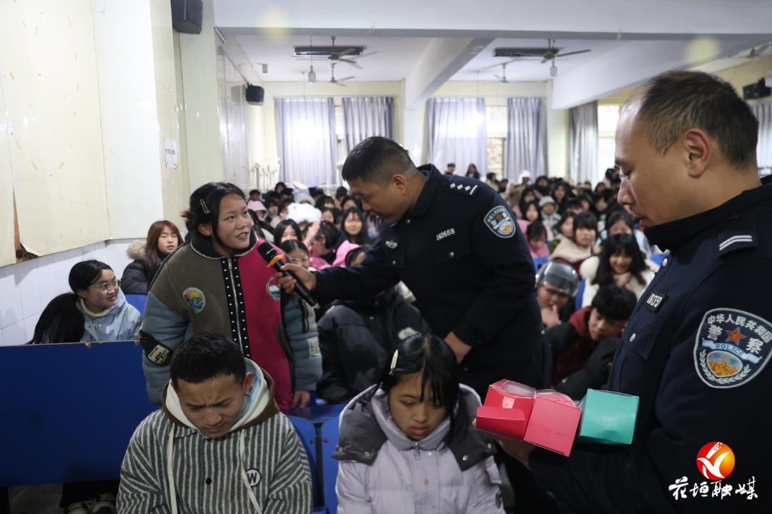 寒假前夕,花垣县公安局十八洞派出所联合刑侦反诈中心、交通管理大队走进校园,为近300名初中学生带来了一堂沉浸式“三防”(防诈骗、防校园欺凌、防交通事故)安全教育课。