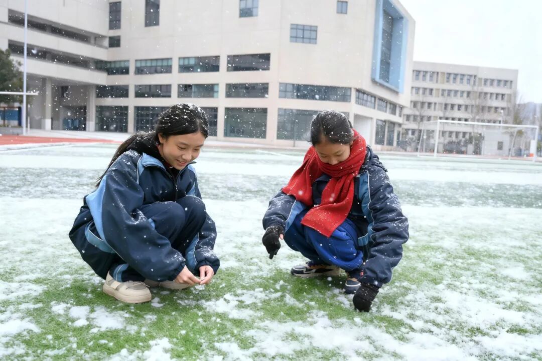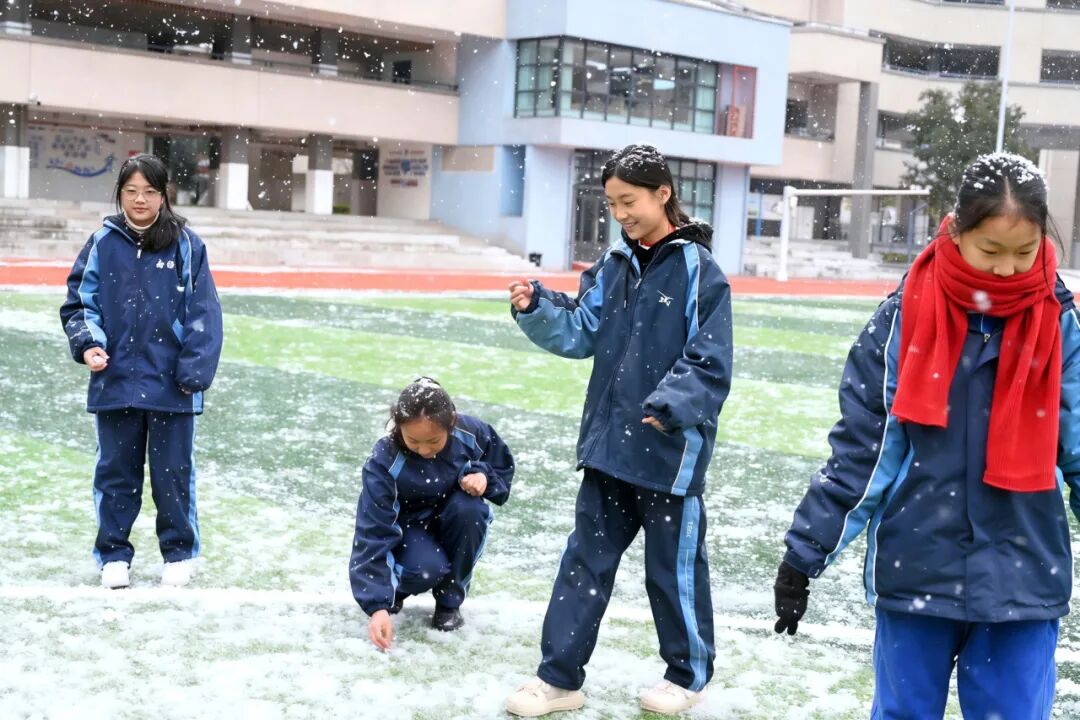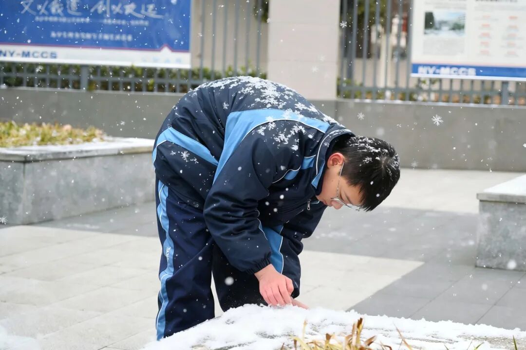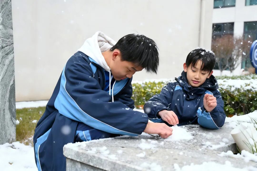 有同学偷偷团了个小雪球;有同学在薄薄的雪上,写下自己名字的缩写;还有同学仰着脸,感受雪花落在睫毛上。原来,这就是冬天的仪式感。