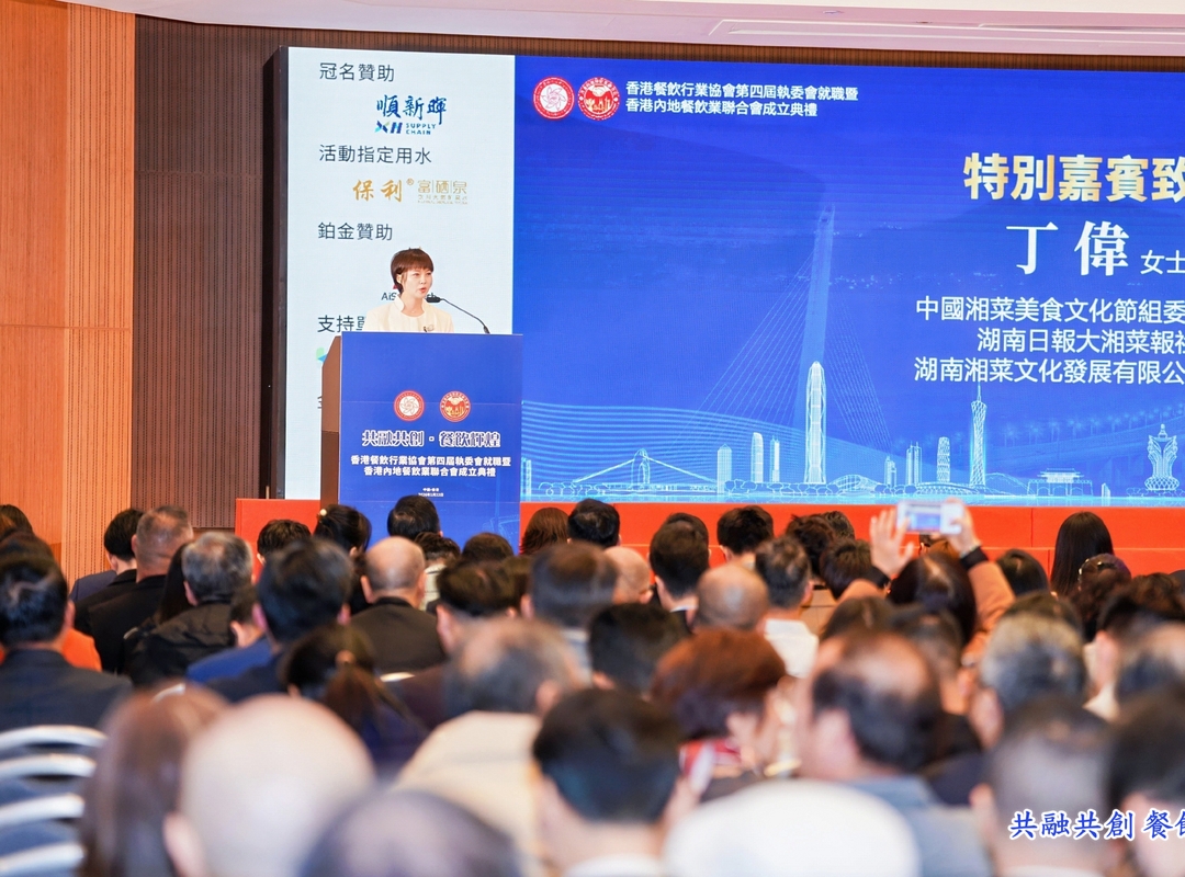 活动现场,湖南日报大湘菜报负责人丁伟在致辞中表示,香港不仅是国际金融、贸易、航运中心,更是中华美食文化走向世界的重要窗口。作为湘菜文化的传播者,她深切感受到香港在湘菜推广中的关键作用。近年来,湘菜通过一系列美食文化活动在香港影响力持续提升,品牌布局日益完善,市场认可度显著增强。丁伟表示:“作为媒体人,未来将继续讲好湘菜故事,传播中华美食文化,为联合会的发展提供舆论支持。”