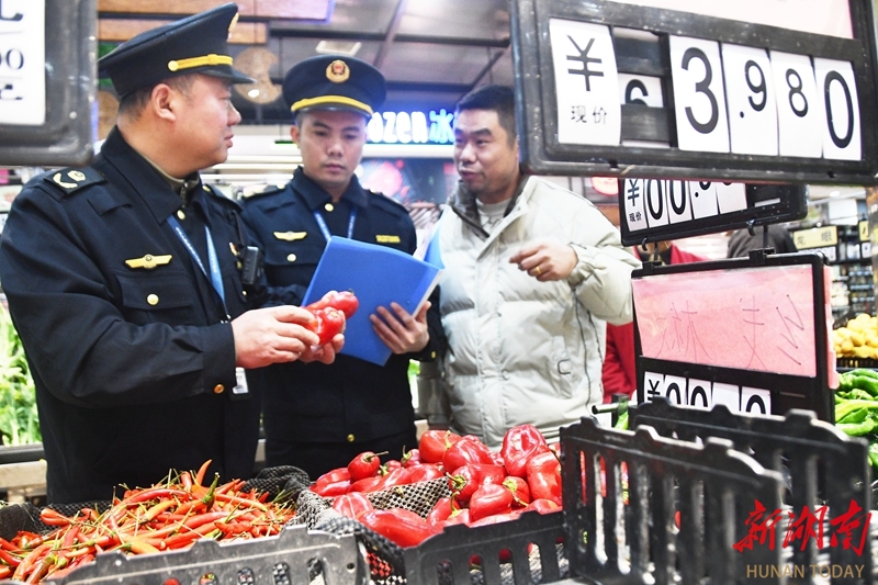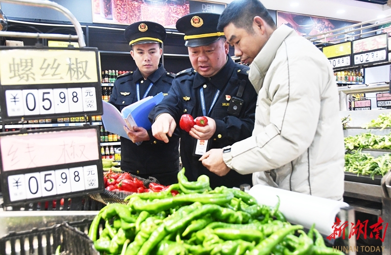 1月23日,江永县市场监督管理局执法人员对辖区超市开展价格专项检查。为确保寒潮期间民生商品供应充足、价格稳定,该局加强对“菜篮子”“果篮子”等重点商品的监管力度,保障市场平稳运行。 田如瑞 摄(湖南图片库)