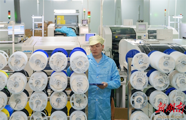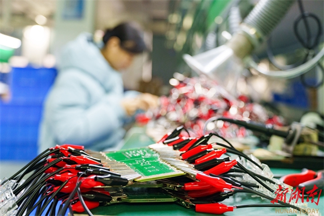 On January 22, workers ramped up production for orders on the production line at the workshop of an electronic technology company in Lengshuitan District, Yongzhou City. Since the beginning of the new year, enterprises across the district have been working at full capacity to meet production targets, striving to achieve a good start for the new year. (Photo/Lei Zhongxiang and Jiang Lingzhi)