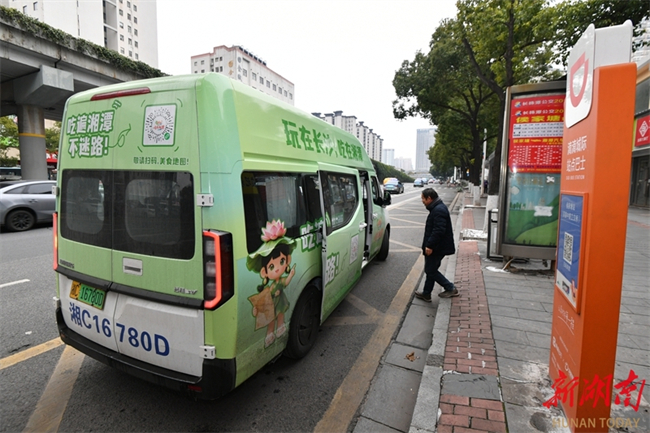 The photo, taken on January 22, shows a passenger boarding a bus on the Changsha-Zhuzhou-Xiangtan Intercity Bus Line 201 at Houjiatang Station in Changsha. Recently, ten "mini buses" have been put into service on this route, enhancing commuting efficiency while offering an immersive culinary and cultural tourism experience themed "Play in Changsha, Eat in Xiangtan." Passengers can scan the "Eat in Xiangtan [吃在湘潭]" mini-program on the bus to access food guides and exclusive discounts. The bus interior also features a hidden "food map," highlighting authentic local delicacies near each stop along the route. These buses have become "mobile urban calling cards," transforming intercity travel into a flavorful journey. (Photo/Tian Chao, Hunan Daily)