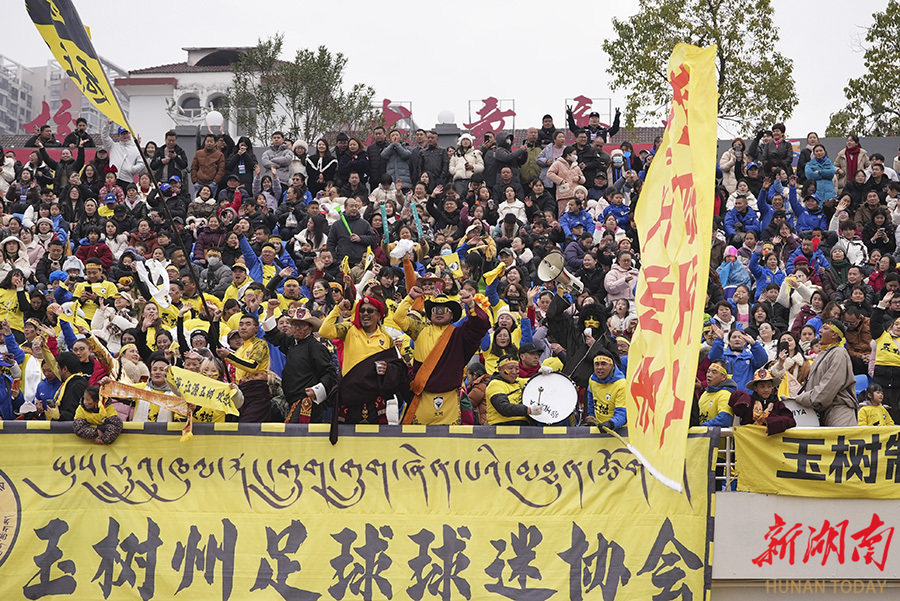 1月24日,永州市体育场,球迷在加油助威。当天,CMG群众足球邀请赛上演季军争夺战,最终山东泰安队以 2:1 战胜青海玉树队获得季军。 湖南日报全媒体记者 童臻熙 郭利 摄影报道