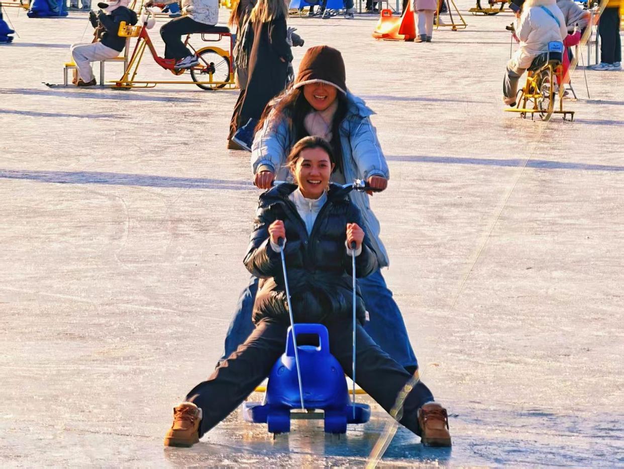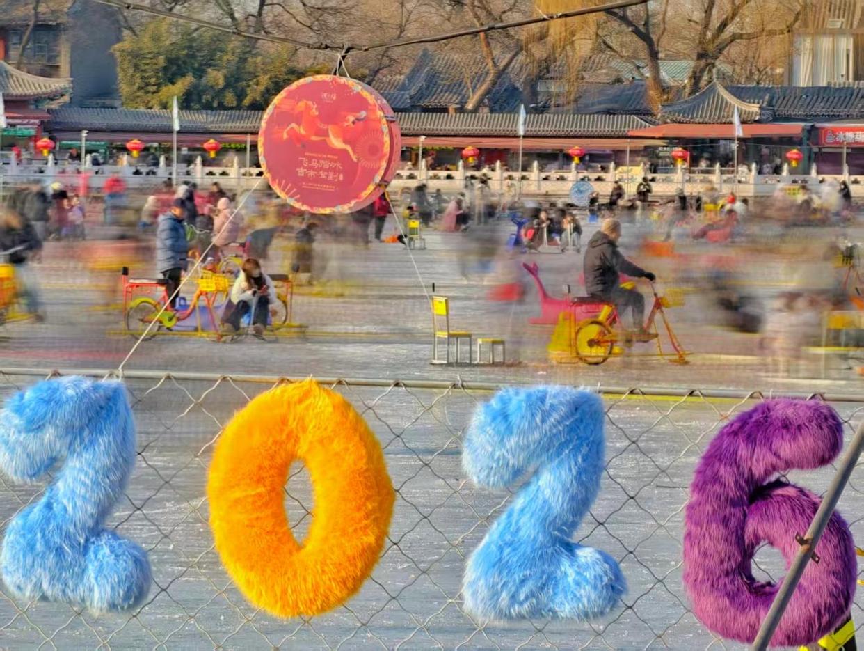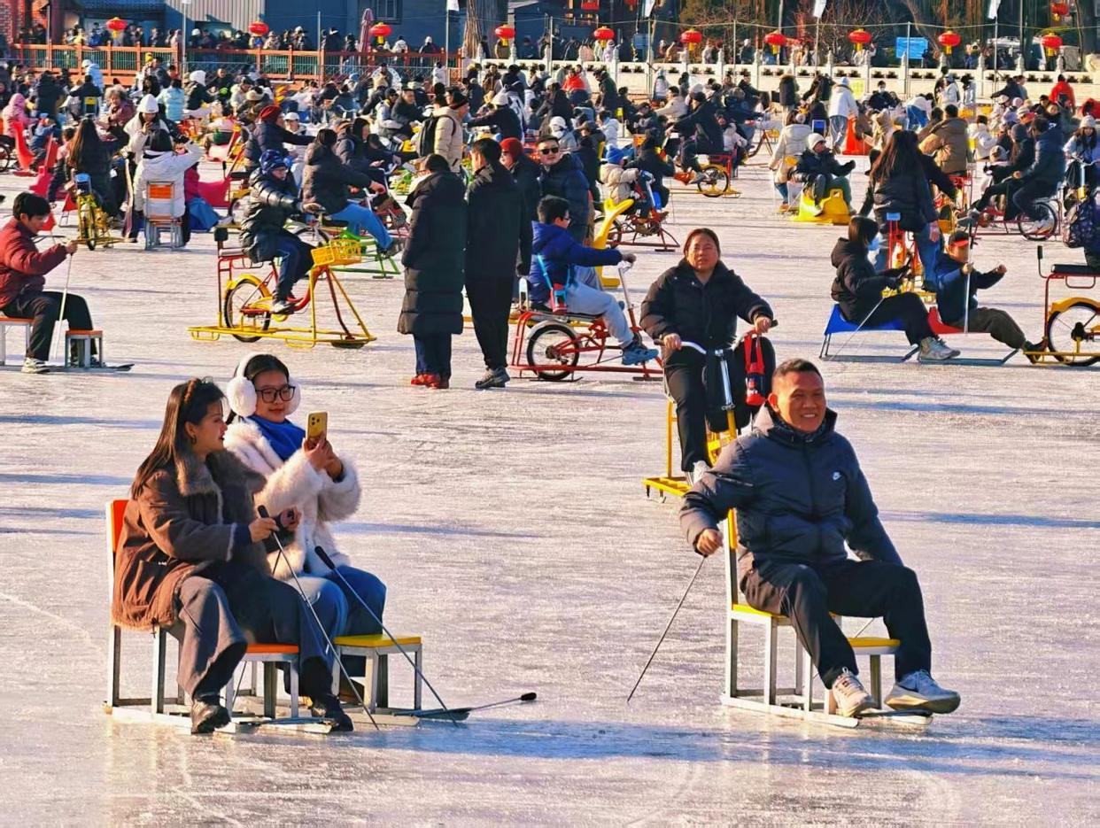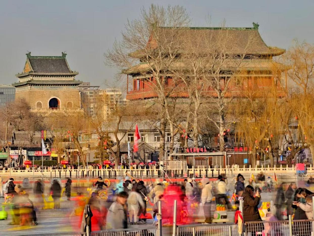 周末的什刹海冰场热闹非凡,人群如潮水般涌动,冰刀与冰车交织,欢声笑语不绝于耳,处处洋溢着冬日的欢快与活力。