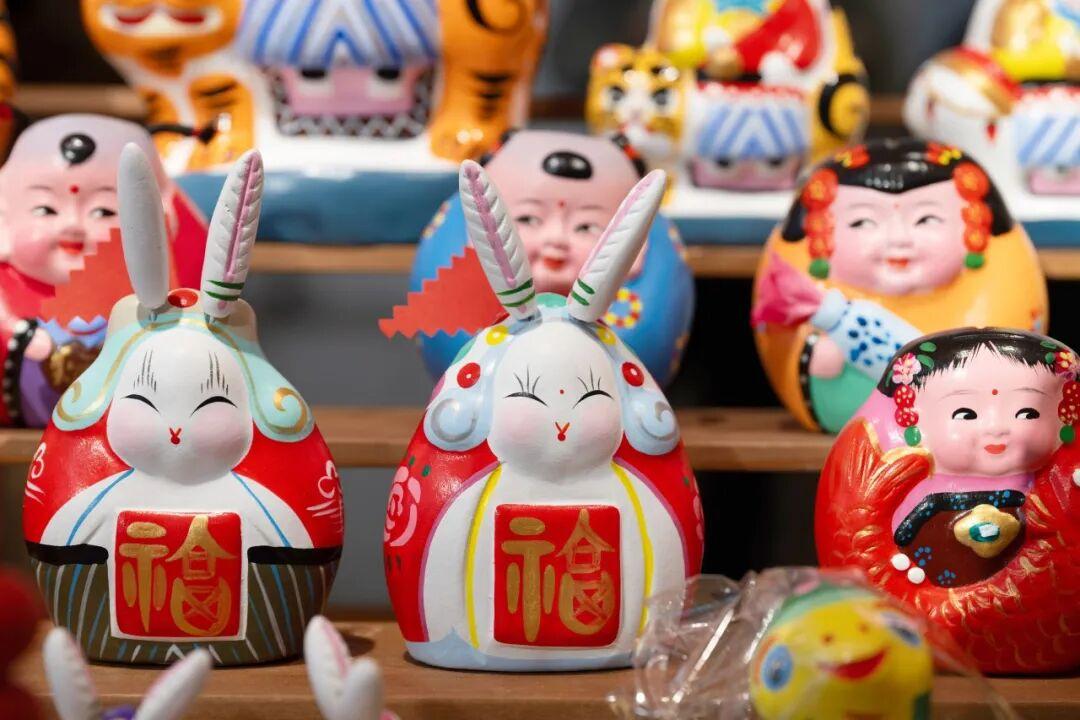 活动特别设置了“年礼”区域,榫卯积木、泥塑兔儿爷等非遗产品一同亮相。更有非遗传承人现场演示,捏面人、绘糖画等传统技艺,将节日氛围拉满。
