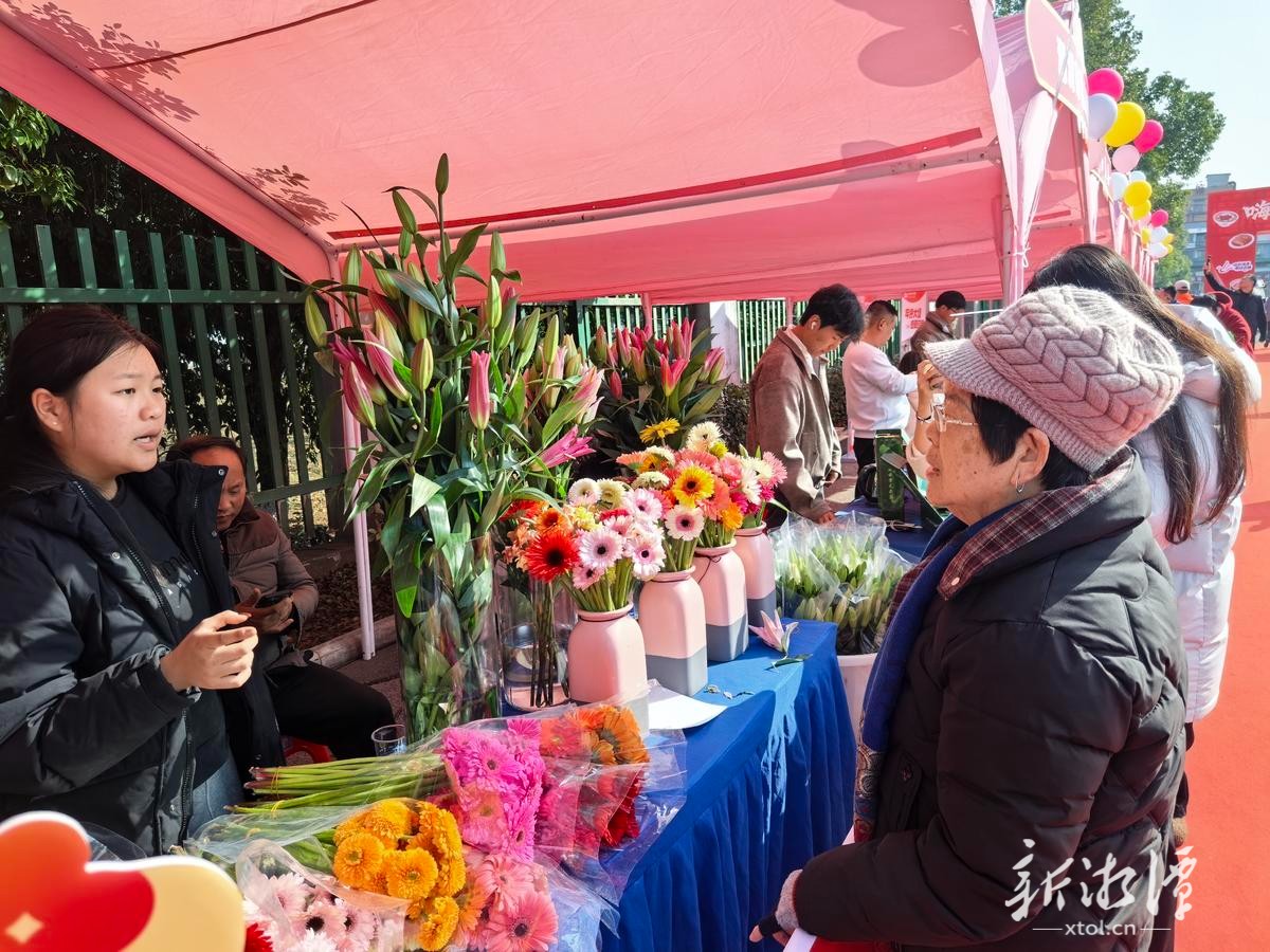 “草莓又大又甜,给我来两盒!”“早就听说湘采鲜花基地的花品质好,今天一定要带一束回去,为家里增添新年的气息。”冬日暖阳下,新春集市人来人往,好不热闹。