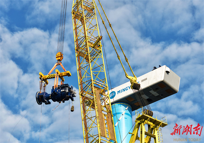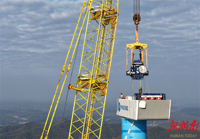 The photo, taken on January 24, shows a wind turbine part is to be hoisted into position at the Yangtze River Wind Farm Project in Changjiang Town, Hengshan County. In recent years, the county authority has given priority to developing green energy. It introduced 160-million-CNY investment to build the Yangtze River Wind Farm in the mountainous area of Changjiang Town, with a total installed capacity of 25 MW, injecting impetus to local economic development. (Photo/Cao Zhengping and Liu Tao)