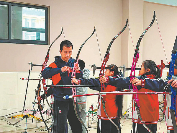 JINAN — At 4 pm, more than 30 students practice basic archery techniques in the Jinxiucheng Primary School training room in Jinan, the capital of East China's Shandong province.