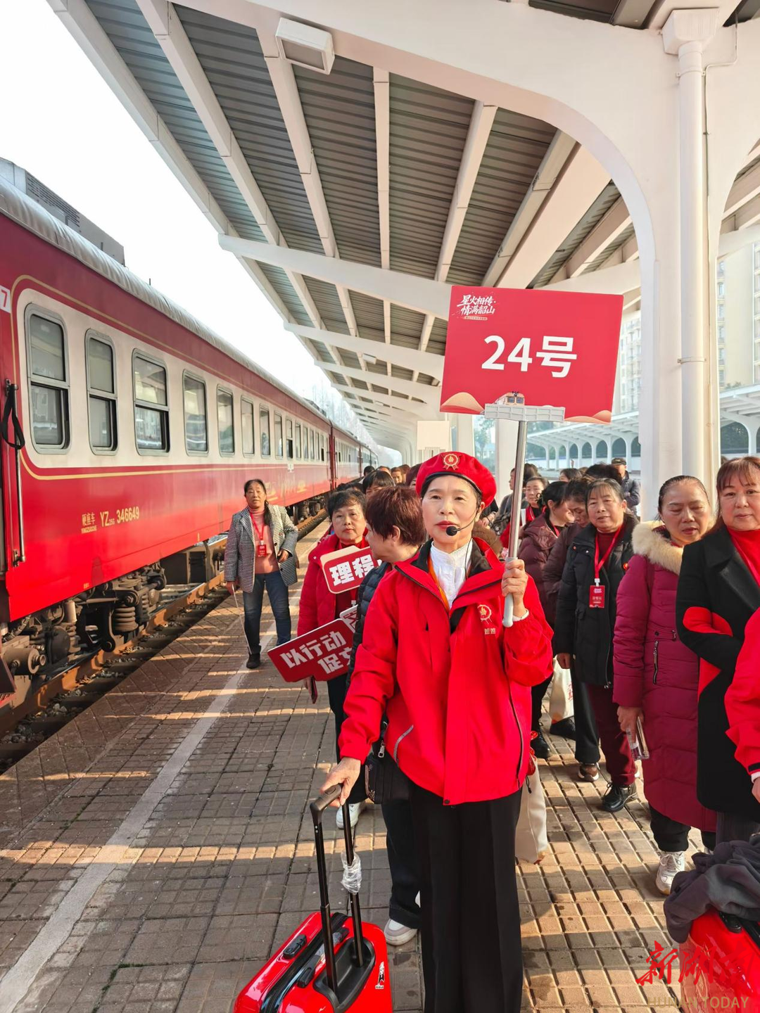新湖南客户端1月26日讯(通讯员 王晓冉)近日,“韶山行”红友专列揭牌仪式在长沙火车站举行,现场暖意融融。长沙市妇联党组书记、主席彭娟走到一位精神矍铄的大姐面前,亲切握住她的手交谈:“邢大姐,您作为退休老同志依然如此热心志愿服务,是广大女性的榜样。希望您继续发挥余热,让星火精神照亮更多人。”