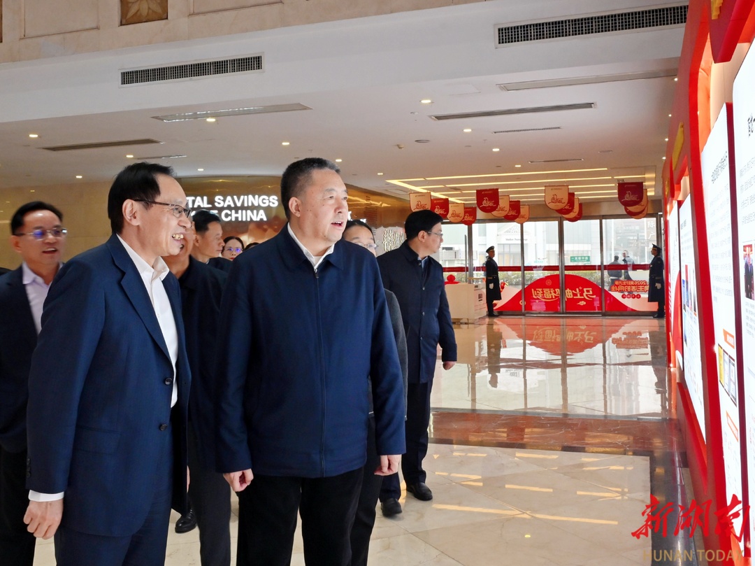 毛万春参观邮储银行湖南省分行展厅。
