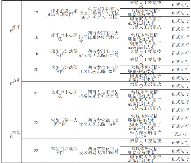经批准开展人类辅助生殖技术的医疗机构名单和信息如下(机构按地市级行政区划和准入时间排序):