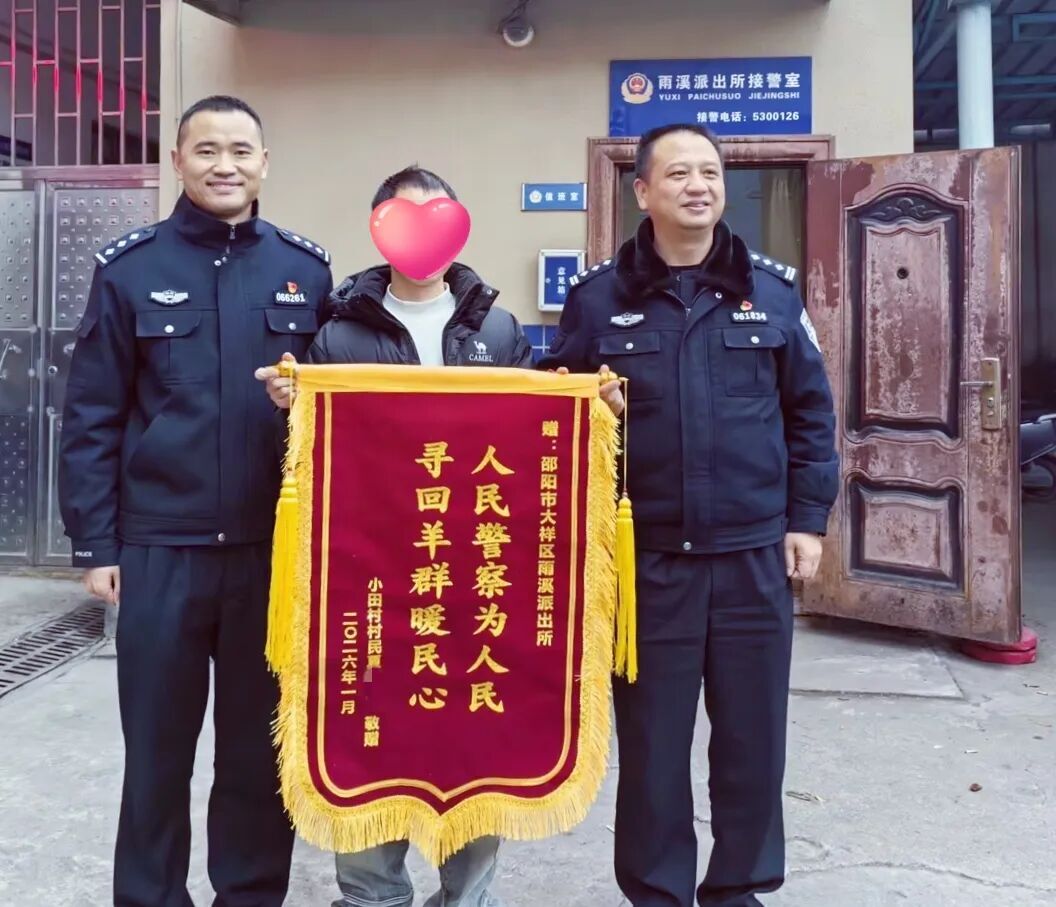 1月19日,夏先生特意制作了一面写有“人民警察为人民 寻回羊群暖民心”的锦旗送到雨溪派出所,表达对民辅警的感谢之情。