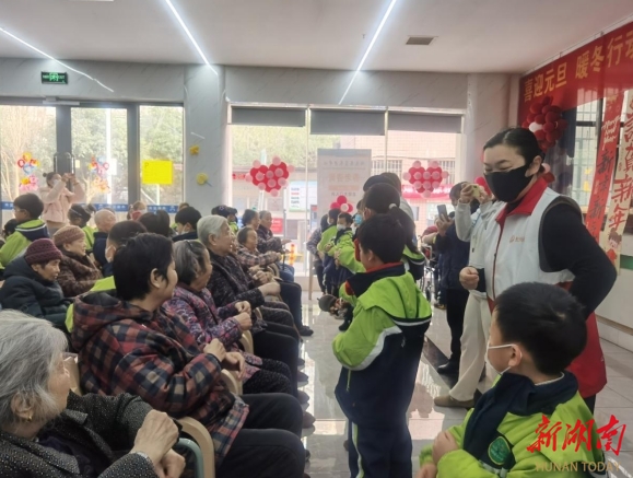 新湖南客户端1月28日讯(通讯员 彭永芳 黄丹)1月28日,长沙市天心区桂花坪街道桂庄社区联合桂花坪街道社工站、桂花坪街道老科协等单位聚焦高龄、孤独、困境老年群体,以“童心牵银发,敬老伴成长行”为核心理念,精心开展“心暖新春·关爱同行——情感慰藉暖人心”新春慰问活动。活动特邀辖区小学生化身小小志愿者,走进养老院与高龄老人温情相伴,将物质帮扶与精神慰藉精准送达,让这个新春暖意融融。