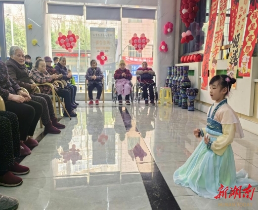 文艺汇演环节点亮了整个活动现场。孩子们轮番登场,献上精心编排的节目:欢快的歌曲演唱、灵动的舞蹈表演、声情并茂的诗歌朗诵,一个个精彩节目,赢得老人们阵阵掌声。孩子们用最纯真的表演,为老人们带来了视听盛宴,也驱散了他们的孤独感。表演间隙,孩子们还与老人们携手做起手指互动操,跟着轻快的节奏伸展指尖、默契配合,笑声、歌声、掌声交织在一起,构成了一幅跨代温情的美好画卷。