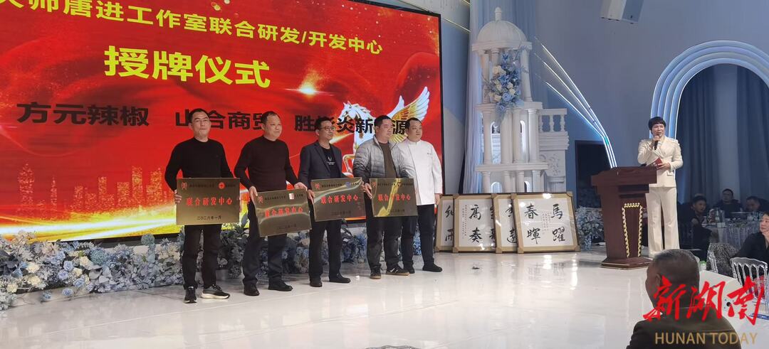 为凝聚力量、共促发展,活动举行了隆重的授牌仪式。唐进工作室为“百胜腊味”等四家单位授予了“联合研发开发中心”牌匾,并向“龙牌味业”等十家优秀合作伙伴授予了“联合推荐品牌/优秀合作单位”荣誉。尤为重要的是,“湘菜大师唐进工作室”与“资兴职业技术学校”在现场完成了校企合作授牌仪式,标志着校企协同育人、共推湘菜产业发展的新篇章正式开启。资兴职业技术学校党总支书记齐振煜发表了热情讲话,对合作前景充满期待。