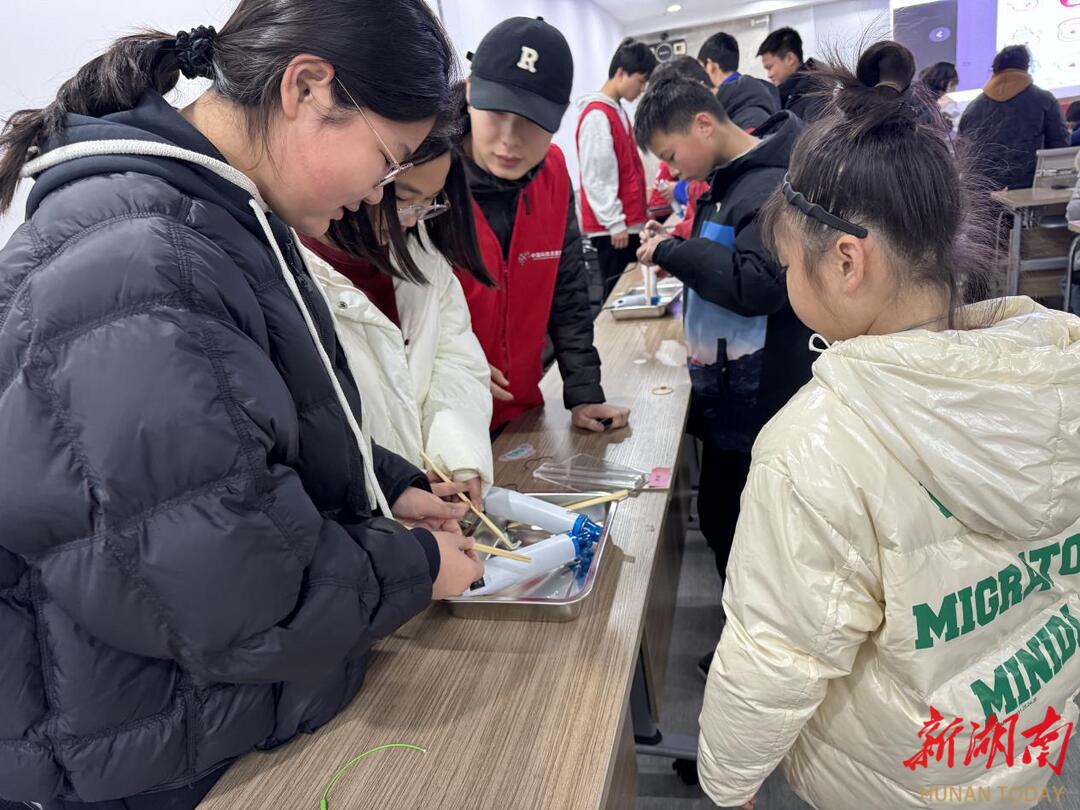 新湖南客户端1月29日讯(通讯员 苏倪)1月27日上午,长沙市望城区高塘岭街道望府路社区党群服务中心里欢声笑语不断,一场别开生面的科普活动正火热进行。由望城区科学技术协会主办的“弘扬科学精神 科普助力‘双减’”主题活动在此拉开帷幕,30余名青少年在科技志愿者的带领下,通过趣味实验、手工制作等环节,解锁了塑料的“隐藏知识”,在动手实践中感受科学魅力。