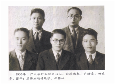 △1933年,广大华行五位创始人合影(后排右一为杨延修)。