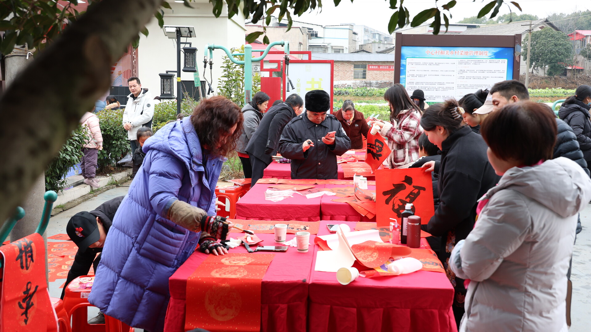 活动设置主舞台和分展台。主舞台进行群众文艺汇演,分展台开展理论政策宣传、特色农副产品展销、书法家现场书写并赠送春联福字等活动,旨在以“互动性、趣味性、实用性”为核心,将科技普及、健康服务、文化传承与乡村吃喝玩等场景深度融合,让群众从“旁观者”变为“参与者”,在体验中学知识、享服务、乐生活,助力乡村精神文明建设与产业融合发展。