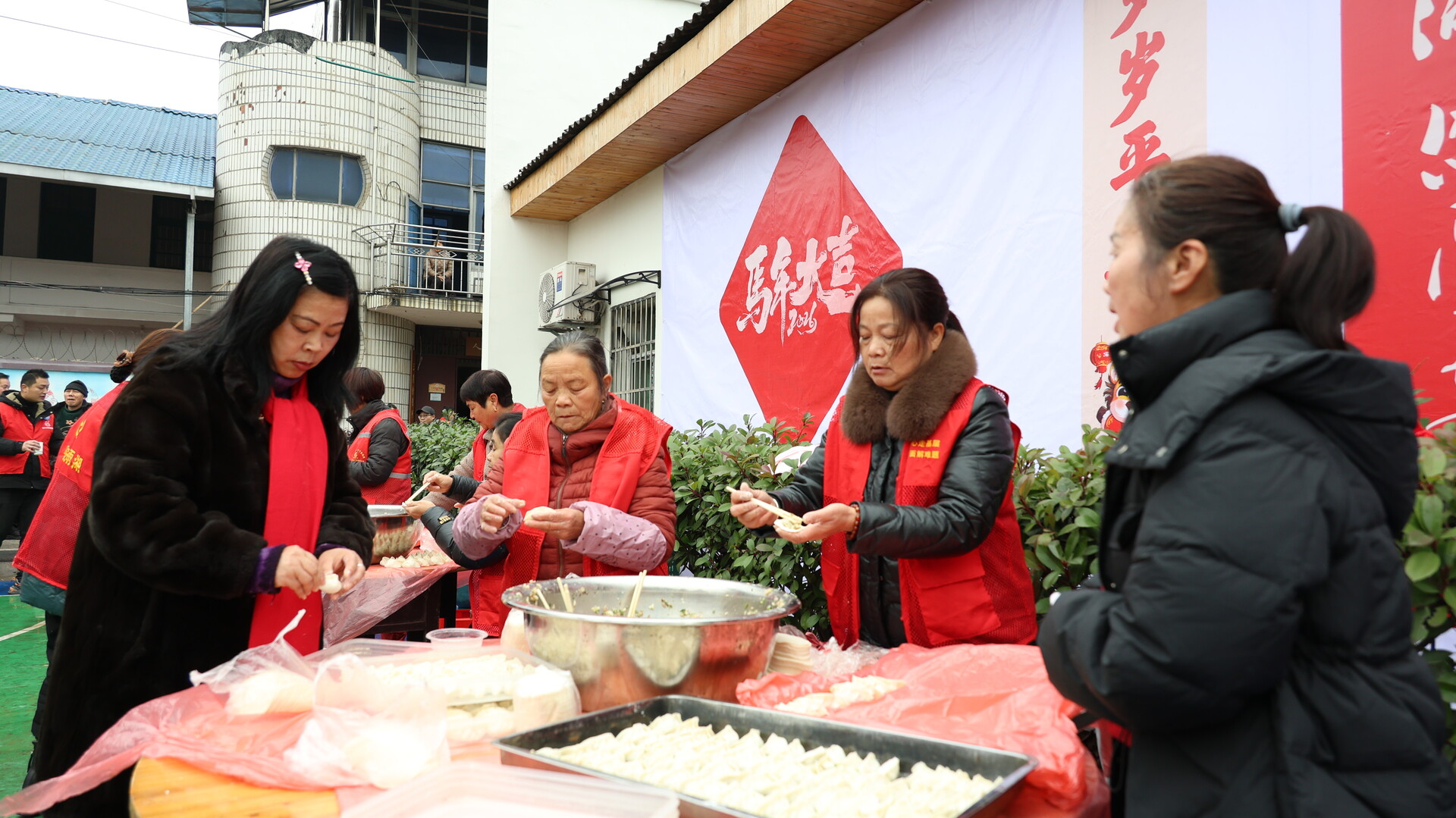 ▲组织村民包饺子、煮饺子。