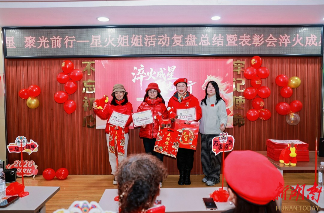 1月29日,“星火姐姐”活动复盘总结暨表彰会议在湘湖街道西湖社区新时代文明实践站圆满落幕。“星火姐姐”们齐聚一堂,共忆往昔耕耘,共话未来期许,在荣耀与温情中为“韶山行红友专列”首发趟的志愿服务画上圆满句号。