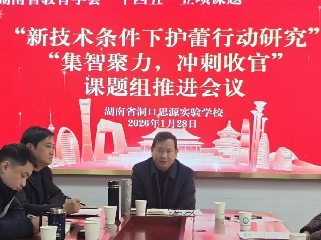 本次会议以“集智聚力,冲刺收官”为主题,既是课题研究关键节点的全面盘点,也是结题前的最后动员与部署。 学校党支部书记杨辉蓼、校长唐生林、党支部副书记胡一愚等校领导全程参会指导,课题主持人王培主任主持会议,课题组全体成员及特邀专家齐聚一堂,共同擘画护蕾行动研究冲刺阶段的路线图。