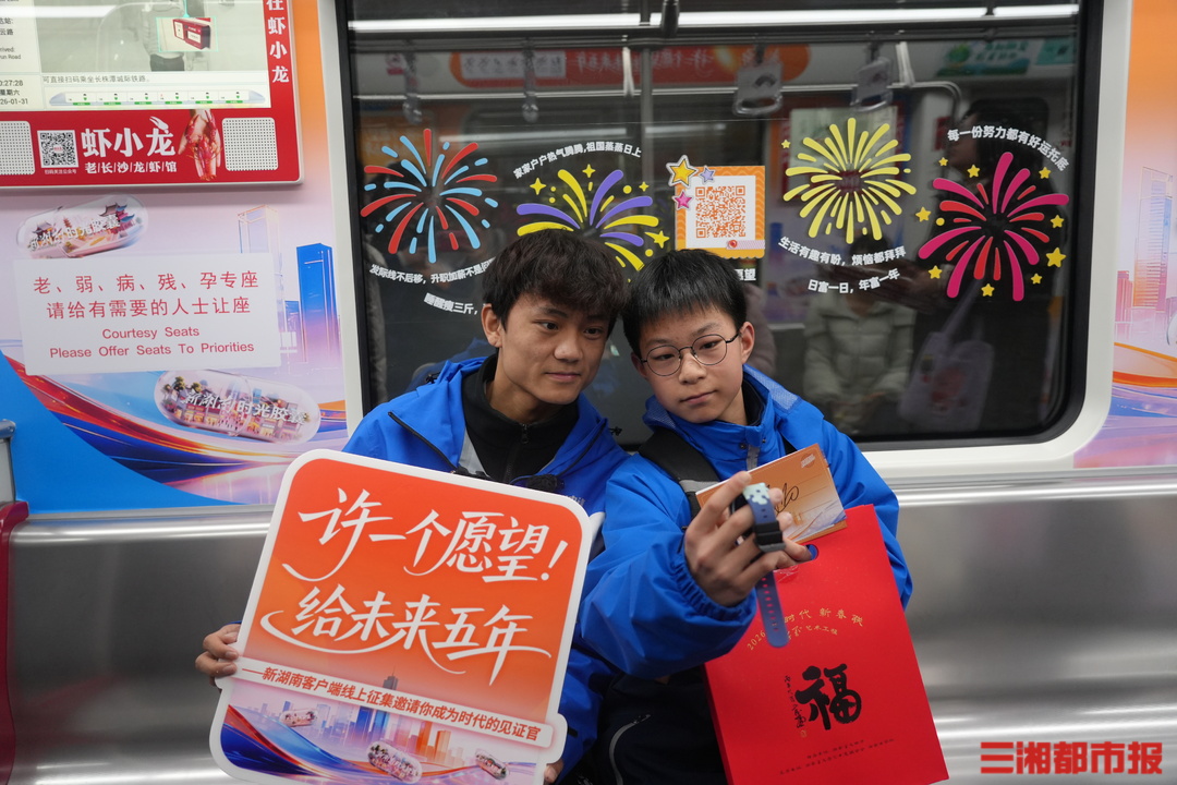 据了解,活动将持续至2月7日,市民只需扫描车厢内的专属二维码,即可跳转至新湖南客户端“许愿专区”,写下未来五年的愿望,还能参与瓜分2万元现金红包,最高可获88元。